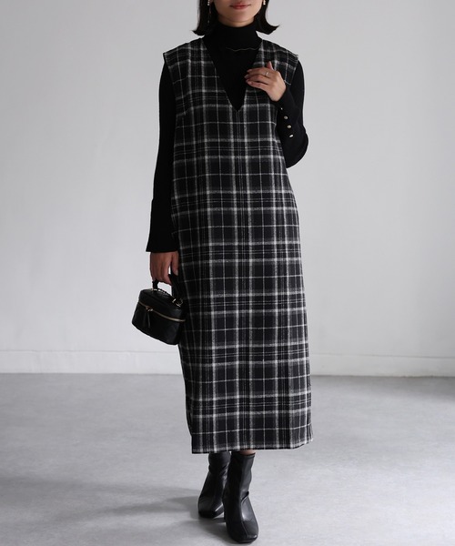 【Riberry Vネックジャンパースカート】 インナーを変えておしゃれを楽しめる!Vネックジャンパースカート ■Styling シンプルなデザインなので、スタイリングの幅が広がるワンピース。 すとんとした落ち感のあるロング丈で洗練された大人スタイルが楽しめます。 ボリューム袖のブラウスやニットを合わせればきれいめな印象に、 ベーシックなリブニットやロンTを合わせればカジュアルな印象になります◎ ■Detail 落ち感のあるストンとしたシルエット。 後ろにスリットが入っているので歩きやすさも抜群です! サイドにポケットがついているのもうれしいポイントです◎ ■Material 起毛素材で秋冬大活躍の一枚です。 ※この素材は摩擦(特に湿った状態での摩擦)や、 汗や雨などでぬれた時は他の衣料や下着・バッグなどに色が移る事がありますので、ご注意下さい。 ※詳しいお手入れ方法は商品タグをご参照ください。 【Information】 ◆《お気に入り登録》がオススメ◆ ・「商品のお気に入り登録」で再入荷通知や、ラストの通知、セール通知も受け取ることが出来ます。 ・「ブランドのお気に入り登録」で新商品や再入荷など、お得な情報を受け取ることが出来ます。 ※撮影時のライティング、太陽光、ご覧になっているモニター・PC環境により、実際の商品と色味が異なって見える場合がございます。予めご了承をお願い致します。