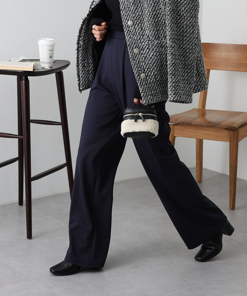 1枚でオンオフコーデが叶うタック入りワイドパンツほどよく太めなサイズ感が、どんなトップスとも相性抜群の1枚。ダブルタックでウエストはすっきり見せつつワイドなストレートシルエットに仕上げました。きれいめな雰囲気がありつつ、ウエスト部分をゴム入りのイージーパンツ仕様にしたことでリラックス感のある印象に。デイリーカジュアルから、オフィスカジュアルまで幅広いシーンで活躍できるアイテムです。【商品ポイント】・脚のラインを拾わないワイドなシルエット・ウエスト背面のみゴム入りのイージーパンツ仕様・シワになりにくくお取り扱いのしやすい素材・ハイウエストデザインで美脚見え■素材・洗濯について素材: ポリエステル98%, ポリウレタン2%洗濯: 洗濯機洗い可(弱)※着用、お取り扱いの際は、商品についている品質表示とアテンションタグを必ずご確認下さい。※商品タグに記載されている商品名がWEBでの表記名と異なる場合があります。※画像の商品はサンプルです。実際の商品と仕様、加工、サイズが若干異なる場合がございます。 ※照明の関係により、実際よりもやや明るく見える場合がございます。またパソコンなどの環境により、若干製品と画像のカラーが異なる場合もございます。予めご了承くださいませ。