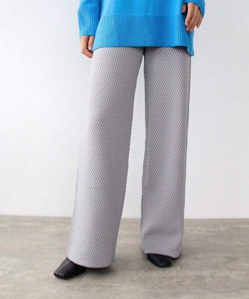 ジャガード織りのニットパンツはコントラストのある柄を入れることでモダンな印象に。 キャメルはチェックパターンで裾へ向けて伸びる設計で美脚効果がありオリジナリティあるスタイリングが楽しめます。 グレーの変形ヘリンボーン柄はどんなトップスにも合わせられるようコントラストを抑えてスタイリングしやすくアレンジしました。 【Limue/リミュ】 ライラックを意味する“lilas”、スズランを意味する“muguet”、 その美しい花々を象徴するように名付けられた造語 “Limue”(リミュ) “繊細さの中にある強さ” を軸に、しなやかで柔らかい女性らしさを表現。 ファクトリーブランドらしく、せっかく買うなら大切に着たいというお客様へむけて、 お洋服の新しい価値と価格をご提案するブランド。 -------------------------------------- 透け感:なし 裏地:なし 伸縮性:ややあり ケア方法:手洗い可 ※お洗濯の際は洗濯表示を必ずご確認ください。 -------------------------------------- ※Attention※ ・取り扱いについては、商品についている品質表示でご確認ください。 ※照明の関係により、実際よりも色味が違って見える場合があります。 またパソコン・スマートフォンなどの環境により、若干製品と画像のカラーが異なる場合もございます。 予めご了承ください。 ※商品によってはシワが付きやすく、畳みジワ、折りジワなどが強く出る場合がございます。 洗濯・アイロンをする前には、商品タグの品質表示をご確認くださいませ。 ※商品のお問い合わせは、商品名下にある「85」から始まる8桁の番号をお知らせください。