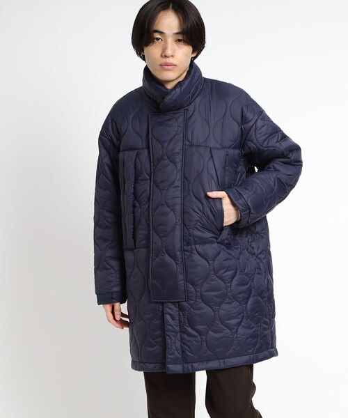 【デザインポイント】中綿入りのウェーブキルトのコートです。少しボリュームのある中綿入りで軽く、羽織る感覚で着ていただけます。フードは衿に入った仕様で用途や気分によって使い分けられます。※ポケット数:前×2【スタイリングポイント】カジュアルなデニム合わせや、デッサンでは定番のチェックのボトムと合わせるのもおすすめです。【素材ポイント】中綿入りポリエステルキルト。キルティングの形状はウェーブ(ひょうたん型)で少しミリタリーな雰囲気です。中綿もしっかりとしたものが入っているのであたたかいです。※裏地ありこちらの商品は主に冬に着用いただける商品です。モデル情報:身長178cm B87 W70 H93 着用サイズ:02(M)店舗へのお問い合わせ商品番号:F59-95307●製品寸法:02(M):着丈96cm B126cm 袖丈55cm 肩幅59cm03(L):着丈97cm B128cm 袖丈56cm 肩幅60cm備考:重量:02(M)約800g
