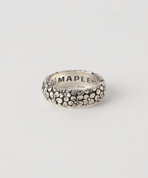 フラワーモチーフの彫刻を施したリング。 燻し加工による陰影で、精巧さが際立つ一点です。 柔和なモチーフを用いながらも、ラギッドな表情をも併せ持っているのもポイント。 シンプルなスタイリングに個性を加えるアクセントとして活躍するアイテムです。 <MAPLE> 2006年にカナダのエドモントンにて誕生した、セレクトショップ"HEAVEN"(ヘブン)。 <JUNYA WATANABE>や<visvim>、<Endgeneered Garments>等の日本ブランドをメインとしたセレクトで世界的にも有名なショップであり、 同ショップのオリジナルブランドとして誕生したのが<MAPLE>です。 その取り扱い店にはSLAM JAMやNordstrom、American Rag Cie、UBIQ等、世界中の名ショップにて取り扱われており、今世界が注目するブランドの一つです。 【注意事項】 ※商品を使用前に、タグ等に記載されている「取り扱い上の注意書き」、「洗濯表示」を必ずご確認ください。 ※商品画像は、光の当たり具合やパソコンなどの閲覧環境により、実際の色味と異なって見える場合がございます。予めご了承ください。 ※商品の色味の目安は、商品単体の画像をご参照ください。 店舗へお問い合わせの際は、全国のBEAUTY & YOUTH各店舗まで下記の品名/品番をお申し付け下さい。 品名:MAPLE FLORAL BAND RG 品番:83334990584