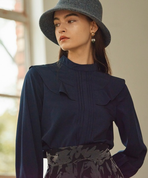 クラシックな印象のスタンドカラーブラウス状品に入ったピンタックにほどよいボリュームのケープデザインがレディな1枚■point・全体的にコンパクトですっきりとしたデザイン・身頃と袖に入ったピンタックに小さめのケープデザインがかわいい・マットな肌触りで着心地のいいお作り■detail身頃だけでなく袖にも入ったピンタックがかわいい!あまりボリュームがでないケープデザインや袖のぽわんとしたシルエットなど一見シンプルに見えてこだわりが詰まった1枚です。透け感のないしっかりとした生地なのでこれからの季節も安心して着ていただけます■coordinateクラシカルな柄が入ったフレアスカートやすとんとしたシルエットのワイドパンツを合わせるとエレガンスなスタイリングに…*シルエットがコンパクトなので、ニットのインナーとしてレイヤードするのも可愛いです。■素材素材:ポリエステル 96%/ポリウレタン 4%**********透け感…なし裏地…なし伸縮性…なし光沢感…ややあり生地の厚さ…普通**********※撮影場所やお使いのモニター環境により若干お色味が異なる場合がございます。※画像の商品はサンプルです。実際の商品とは仕様・加工・サイズ・素材が若干異なる場合がございます。■商品のお気に入り登録■ラスト1点の通知やセール通知、また完売していても再入荷時に再入荷通知を受け取ることができますので、是非ご登録ください♪■ブランドのお気に入り登録■新商品や再入荷など、お得な情報を受け取ることができます!ぜひご活用ください!