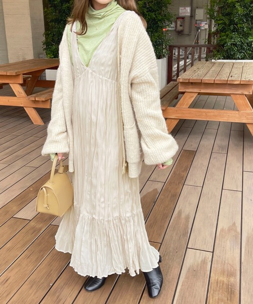 ◆バックデザインが可愛らしいクリンクルワンピ後ろのリボンデザインが可愛らしいロングワンピース。クリンクル加工が施された柔らかな見た目で優しい印象に。肌さわりが良い生地感で着心地が抜群◎裾の切り替えデザインがアクセントに。さりげなく裾が広がりフェミニンな印象をプラスしてくれます。ハイネックインナーや、Tシャツを合わせたり、カーディガンを羽織ったりと様々な着こなしを楽しめるアイテムです。---------------------------------------透け感:切り替え下の裏地のない部分,アイボリーあり裏地:あり---------------------------------------※ご覧のモニター環境や撮影環境により実際の商品と多少色味が異なって見える場合がございます。ご理解の程よろしくお願いいたします。【お買い物をよりお楽しみいただく為に♪】▼商品のお気に入り登録をおすすめします♡をクリック!完売カラーの再入荷や、ラスト1点の通知、セールの際の通知を受ける事ができます。ブランドのお気に入り登録もご一緒にお願い致します。