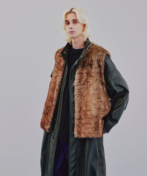 スタイリングに個性とトレンド感を 【素材】 短すぎず、長すぎない丁度良い毛足の長さ。 柔らかなタッチが特徴で気楽にお使い頂けます。 ※裏地あり 【デザイン】 程よくリラックス感のあるオーバーサイズシルエットに緩やかなラウンドVネックが特徴の一着。 無駄な仕様を最大限に省きシンプルでミニマルな仕様に仕上げました。 着回しもしやすく、スタイリングに取り入れるだけで一気におしゃれ感度が上がる今季大注目アイテムです。 ※ポケット数:横×2 【スタイリング】 一見使いにくそうなアイテムですが、カジュアルなパーカー・スウェットからキレイ目なシャツニットまで幅広いアイテムと相性が良いです。 着る人によって表情を変えられるスタイリングが楽しくなる一着です。 こちらの商品は主に冬に着用いただける商品です。 モデル情報:身長181cm B80 W75 H90 着用サイズ:88(FREE) 店舗へのお問い合わせ商品番号:979-55145 ●製品寸法: 88(FREE):着丈67cm B134cm 肩幅46cm 備考:重量:88(FREE)約445g(サンプル重量)