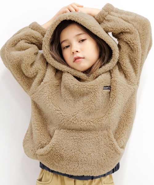 ボアであったかもこもこ♪ 伸縮性もあるので動きやすく、フードで首元まであったかい★ 胸元の小さなロゴがポイント!