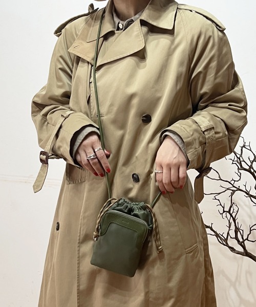 ▼スマホポーチ+αの機能性巾着モバイルポーチ・ポリエステル生地×パラコードの配色がかわいい♪・キャンプやフェスなどのアウトドアグッズとしても◎・レザーの部分使いが高見え感をプラス♪・背面にカードポケット×2,全面にファスナーポケット、中にキーリング+オープンポケット・ポケット部分は、小銭やお札を入れてお財布として使ったり、リップやガムなどのちょっとしたものを入れたり… キーリングもついているので、カード+お金+鍵+スマホでお出かけもバッチリ【サイズ】 H18 ㎝ W11.5㎝ D2cm【素材】ポリエステル×牛革 【原産国】中国
