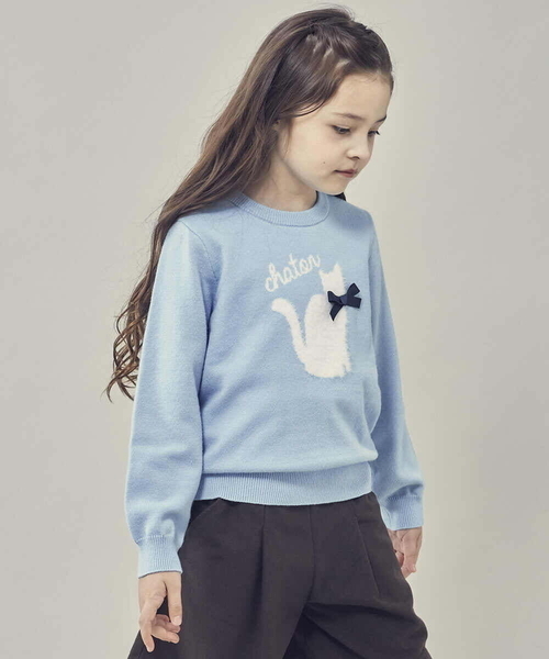 ◆おうちで洗えるマシンウォッシャブル素材◆ 【デザイン】 ・モチーフやロゴがアソートになった4色4柄展開。 ・シンプルなシルエットでどんなボトムにも合わせやすい。 【素材】 ・もちもちとした肌触りの良いニット素材。 ・お家で洗えるマシンウォッシャブル素材。 【スタイリングポイント】 ・一枚で存在感のあるニットなので、暗くなりがちな冬のコーデもパッと華やかに! ・シャギーチェックのパンツやスカートと合わせた上品カジュアルなコーデがおすすめ! ・スカパンやスキニーパンツなどデイリーなボトムに合わせるだけでサマ見えするコーデが完成! 【カラ―】 ・ライトブルー…ふわふわの猫モチーフが冬にぴったりなライトブルー。 ・ネイビー…ガーリーなさくらんぼモチーフが目を惹くネイビー。 ・ラベンダー…大きめロゴがこなれ感のあるラベンダー。 ・ライトグレー…姉っぽいロゴデザインがおしゃれなライトグレー。 【スタッフ着用コメント】 ・もちもちとした肌触りで着心地抜群。 ・4色4柄の豊富なカラー展開で、小学生から中学生まで幅広い世代のお子様におすすめ! -------------------- 透け感:なし 裏地:なし 伸縮性:あり 光沢感:なし 生地の厚さ:普通 -------------------- ≪お気に入り登録機能の使い方≫ ■商品のお気に入り登録(ハートマークをクリック) 再入荷通知や値下げ等、お得なご案内を受けることができます。 -------------------- ※一部WEB・店舗限定販売です。 ※同じデザインの140サイズ/150サイズ/160サイズございます。 140サイズ/150サイズ商品コード:KJFLQ60034 160サイズ商品コード:KJFLR60039 ※サンプルでの撮影となるため、実際にお届けする商品と仕様やサイズが異なる場合がございます。 ※商品画像は、光の当たり具合やパソコンなどの閲覧環境により実際の色味と異なって見える場合がございます。 商品の色味の目安は商品単体の画像をご参照ください。