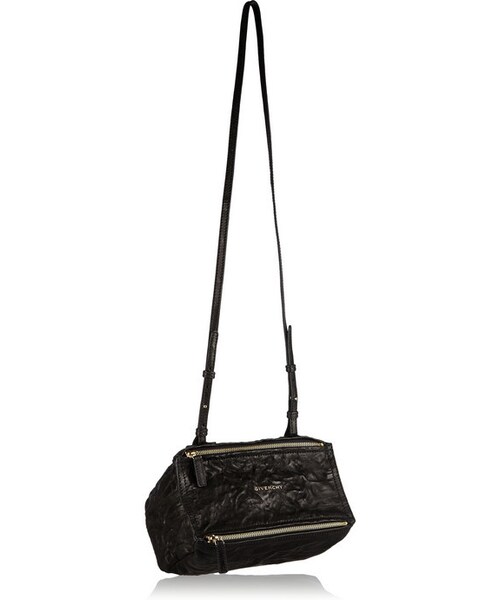 Givenchy's angular 'Pandora' bag is one of the label's most coveted styles. This mini washed- leather version is equipped with an adjustable shoulder strap and two canvas -lined internal compartments. Carry yours day or night. Black washed-leather (Sheep) Detachable adjustable shoulder strap Designer plaque, gold hardware Internal zipped pocket Fully lined in black canvas Zip fastenings along top Comes with dust bag