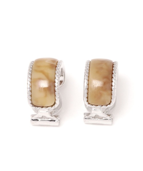 お顔周りのアクセントに マーブルカラーの樹脂が目を引くイヤリング。 丸みのあるフォルムで、可愛すぎない女性らしさを演出してくれます。 手持ちのアクセサリーとも相性の良い2色展開。 ーーー イヤリング シンプル ーーー