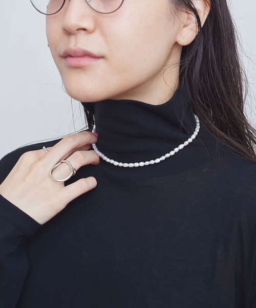 チョーカータイプのネックレス。 衿ぐりのあいたカットソーはもちろん、カジュアルなTシャツに合わせても素敵です。 クラシックな素材ですが、ほどよく首にフィットする長さなのでデイリーに使いやすいアイテム。 気負いなくつけて頂けるパールです。 ※光の関係で実物の商品の色味とは若干異なる場合がございます。あらかじめご了承ください。 ※商品はサンプルです。実際の商品と仕様、加工、サイズが若干異なる場合がございます。 ※取り扱いの注意については取り扱い表示をよくご確認の上、着用をお願いいたします。 fig London(フィグロンドン) CONCEPT English vintage & country inspired natural look joy of slow life relax & cosy playful & curious イギリスのヴィンテージやカントリーを感じさせるナチュラルルック ちょっと間の抜けたゆったりライフの楽しみ リラックスできて着心地が良い 遊びごころがあり好奇心がわく イメージ、カタチ