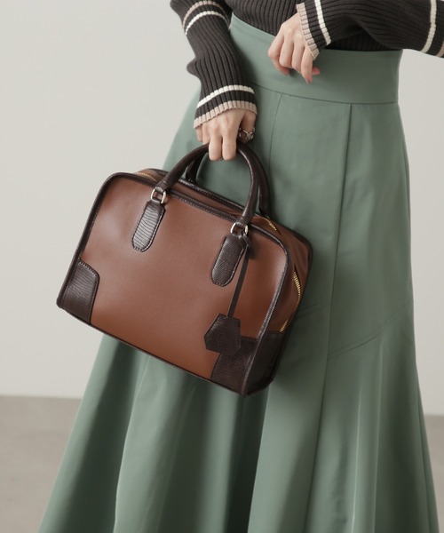 かっちりとしたスクエアフォルムが大人顔なボストンバッグ。本体を縁どるようにパイピングで配色をきかせた上品な印象のデザイン。ファスナー開閉で、中が見えない安心構造です。冬のデイリースタイルに取り入れやすいバイカラーのホワイトとブラウン、微配色のグリーンの3色展開です。