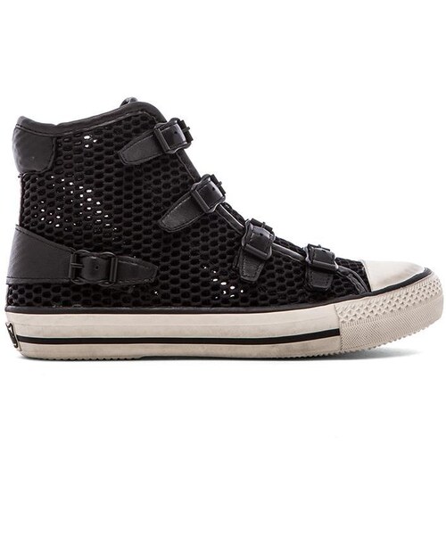 Mesh textile upper with rubber sole Multi buckle detail Side zip closure