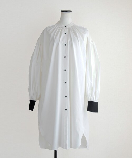 ◆アイテム詳細◆ 人気シリーズのワンピースタイプが登場です! ポリエステル×コットンのシワの出来にくい生地が使用されたオーバーギャザーOP。 イージケアが可能なためデイリーユースに最適な一着です。 【モノトーン】はホワイトの本体に、カフス&ボタンがブラックのモードな雰囲気の配色に。 オーバーサイズながら袖口や襟元にギャザーデザインがあるので、すっきりと着られてカジュアルにもオススメです。 袖にボリュームを出すことで、モードでありながら女性らしいソフトな雰囲気。 1枚で着てブーツで合わせたり、ボトムスとのコーデもおすすめです☆ ───────────────────────────── 【COLOR】ホワイト×ブラック(カフス&ボタン) 【SIZE】Fサイズ 平置き(㎝)前丈99 後丈102 肩幅54 袖丈56 身幅70 裾幅68 【素材】本体 ポリエステル65% 綿35%