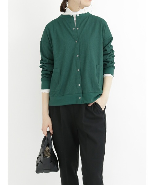 肌触りの良いカットリブ素材で仕立てたカーディガン。 ボタンの配色も爽やかなアクセントをプラスします。ベーシックなクルーネックタイプで、どんなアイテムとも合わせやすい1枚。 ワードローブの定番としても活躍してくれること間違いなしです。 ※商品画像は、撮影環境やお客様のご利用のPC・スマートフォンのモニター環境などにより実物と色味に差異がある場合がございます。