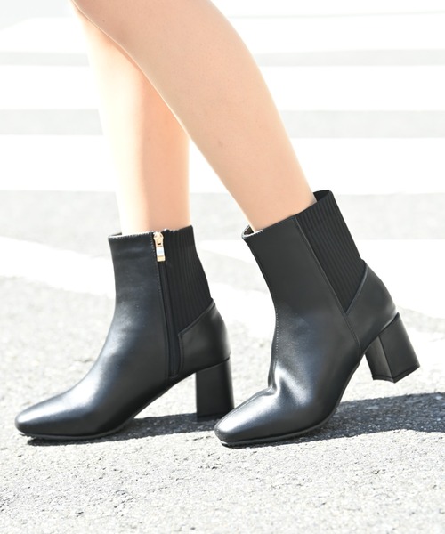ニット素材のコンビがポイントのショートブーツ。 太めヒールで安定感抜群なので、とっても歩きやすい! オシャレと履きやすさを両立させた一足です。