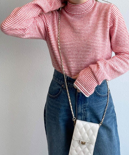 マストハブな定番ニット ワードローブに1枚はほしい定番のボーダーニット。今シーズンは細幅のボーダーなので、カジュアルになり過ぎず、落ち着いた印象になります。ハイネックに指ぬきのデザインなので、インナーにしたときに、首元、袖口からボーダーを覗かせたレイヤードスタイルにも活躍します。 スタイリング 癖のないデザインなので、どんなボトムスとも相性が良いです。定番的な着こなしだとデニムパンツなどでシンプルにまとめると◎。今シーズンはミニ丈のボトムスと合わせるとグッと今っぽいスタイリングになります。 ※商品の色はimageの着用写真ではなく、商品写真をご参照ください。 ※商品サンプルにて撮影しております。若干の仕様変更が生じる場合がございます。 -------------------- 裏地:なし 透け感:なし 厚さ:薄め 伸縮性:あり -------------------- 【お買いものにおすすめの便利機能!】 ★商品のお気に入り登録 完売カラーの再入荷の時や、ラスト1点の時、セールになった時にお知らせします。 ★ブランドのお気に入り登録 商品や再入荷、セール情報など、いち早くブランドのお得な情報を受け取ることができます。 ぜひご活用ください!
