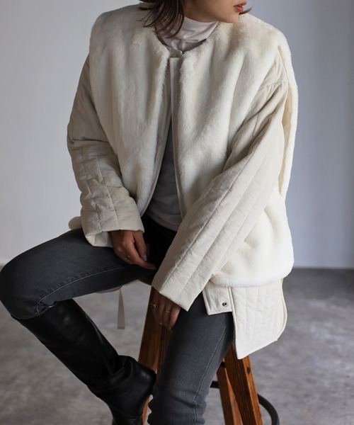 3WAYで多様な着こなしが可能!トレンド感溢れる万能コート 《商品説明》 肌触りの良いフェイクファーベストとストライプ状のキルティングコートがセットになったアイテム。 トレンドのファーベストはサイドのベルトでサイズを調整出来るので、アウター合わせはもちろんですが、ロンTやニットの上にもピッタリ! キルティングコートは軽くライトな仕上がりで羽織りやすく、普段使いにも◎ ------------------------ 透け感/なし 光沢感/微光沢 伸縮性/なし 裏地/あり 厚み/厚手 ------------------------ 【Information】 ◆《お気に入り登録》がオススメ◆ ・「商品のお気に入り登録」で再入荷通知や、ラストの通知、セール通知も受け取ることが出来ます。 ・「ブランドのお気に入り登録」で新商品や再入荷など、お得な情報を受け取ることが出来ます。 ※撮影時のライティング、ご覧になっているモニター・PC環境により、実際の商品と色味が異なって見える場合がございます。予めご了承をお願い致します。 ※モデル着用画像は実際の色と多少異なる場合がございますのでトルソー画像をご確認ください。