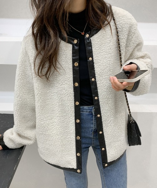 ぽわんと可愛く、ふわふわ肌触り。大人気のボリュームボアブルゾンの登場!程よくボリューム感のあるシルエットで絶妙なフェイクレザー配色と、レトロスポーツな雰囲気漂うボアブルゾン。程よいミドル丈がボトムスを選ばずコーデを楽しむことができるニュアンスカラーの万能アウターはインナーを変えてロングシーズンに渡り大活躍。スポーティーなディテールながらスカートとも好相性です。普段のコーデにMIXするだけで、よりお洒落な印象に仕上がり、暖かさも可愛さも兼ね備えた旬なアイテムです。【お買い物をより楽しんで頂くために】▼商品のお気に入り登録♡のクリックで商品のお気に入り登録が完了!完売カラー再入荷のお知らせ、ラスト1点のお知らせ、セールのお知らせを受け取ることができます。▼ブランドのお気に入り登録新商品や再入荷のお知らせ等、いち早くブランドのお得な情報を受け取ることができます。※他のキャンペーンにより、期間中に価格が変動する場合があります。※セールは予告なく終了させていただく場合もあります。※商品画像は撮影時の光や角度により、実物の色味と異なって見える場合がございます。※生産時期により色・素材・サイズ感など多少異なる場合がございます。予めご了承ください。※画像の商品はサンプルとなります。実際の商品と色味、仕様、加工、サイズ、素材等が若干異なる場合がございます。※サイトに表示されているカラー名と実際のお届け商品に記載されているカラー名が異なる場合がございます。●サイズ表をご確認の上、お間違いのないようご購入下さい。※サイズは平置きで測定しております。 サイズは、実寸サイズを測っているため多少誤差がでる場合があります。 製造工程の関係上、各採寸箇所実寸(平置き)より【約-2cm~+2cm】程度は 誤差の許容範囲とさせて頂いておりますので、予めご了承くださいませ。