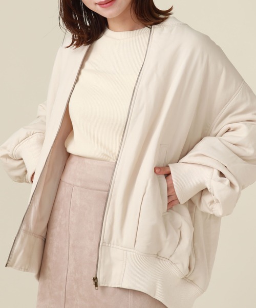 ■秋にぴったりなカジュアルアウター■ ルーズなサイズ感が今年らしいMA-1。 厚すぎない素材感が秋にぴったりです。 背中から袖にかけてギャザーが入っており、バックスタイルも抜かりのないデザイン。 1枚で主役になるアウターです。 長めの着丈とゆったりしたサイズ感でトレンド感アップ。 分厚いニットも中に着ていただけます。 インナーダウンなどを重ねると長い期間での着用が可能に。 ミニスカートやマーメイドスカートなどフェミニンなアイテムとの着こなしがおすすめです。 ーーーーーーーーーーーーーーー 透け感:なし 裏地:あり 伸縮性:袖部分あり 光沢感:微光沢 生地厚さ:やや厚め 洗濯方法:クリーニング推奨 ※詳しいお手入れ方法は商品についているタグをご覧ください ーーーーーーーーーーーーーーー ※ご利用のモニター環境により、実際の色味と多少異なる場合がございます。 … information … 欲しいitemをお気に入り登録(♡マークをclick) ・お買いのがし対策…完売itemの再入荷やラスト1点の情報をお知らせ ・欲しいitemをお得にget…price downになったらいち早くお知らせ ・スムーズ検索…ZOZOのお気に入りアイテムページで簡単checkできるから、再検索不要♪