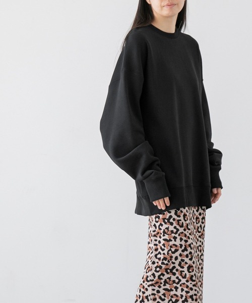 ■素材特性■ 度目をギリギリまで詰めた裏毛になります。 表にリング糸を使い、仕上げでバイオ加工をする事できれいな表面に仕上げています。 裏糸には太番手の糸を使用してさらに厚み出し肌触りを良くしています。 ■デザイン■ ユニセックスサイズのスウェットです。 脇にリブ使いを採用してカジュアルなデザインにしています。 身幅だけでなく、裄丈も長めなので、メンズでも着用できるサイズ感でユニセックスで着ていただけるのも特徴です。 ※こちらの商品は、パッケージも商品の一部となりますので、破損している場合、返品・交換を承ることができません。