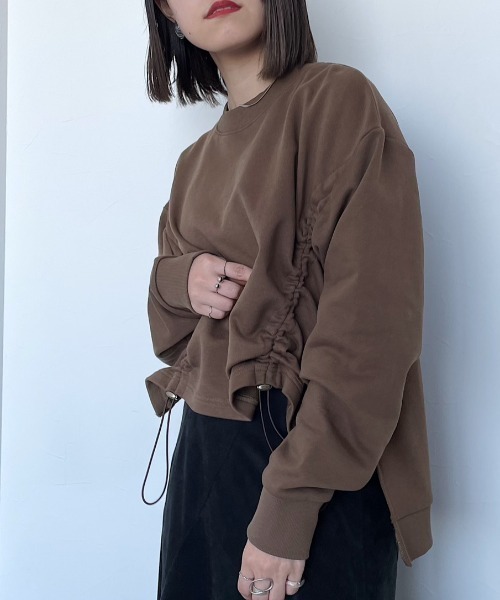 ドロストデザインが目を惹くトップス 前身頃にはドロストデザインを施し、ゴムでギャザー感を調節でき、お好みの雰囲気に設定できる嬉しいポイント。 ドロストした状態で前身頃がショート丈に変化します。 ストッパーは金属ライクのパーツを使用しモードな雰囲気をプラス。 パンツにもスカートにも合う万能アイテムです。脚長効果も◎ 〈注意事項〉 ・サンプルにて撮影をしておりますので、実際の商品とは素材や仕様・加工・サイズ等が若干異なる場合がございます。 ・モニター・環境等により実際の商品と色味が多少異なって表示される場合がございます。予めご了承をお願いいたします。 ・撮影環境により、光の当たり具合で色味が違って見える場合があります。あらかじめご了承下さい。 ▼気になるアイテムは《お気に入り登録》がおすすめです! 完売カラーの再入荷情報、セール情報、ラスト1点の通知を受け取ることができます! ▼《ブランドのお気に入り登録》で新商品や再入荷などのお得な情報をいち早くお知らせします。