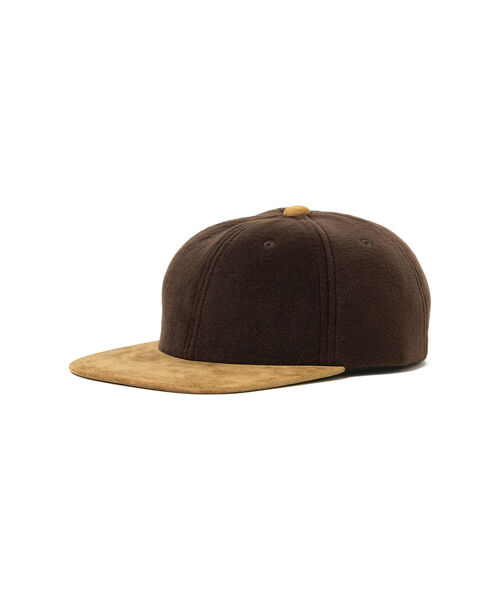 異素材仕様の魅力的なデザイン ■デザイン 通常のベースボールキャップのツバ部分にスエードを使用し、バックにも同様のディテールをプラス。フリースとスエードレザーの相反する表情が好印象の一品。 ■サイズ フリーサイズ