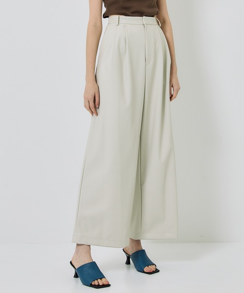 〈素材〉・タテ、ヨコ共にストレッチ性に富んだ合成皮革・軽くてしなやかなリアルレザーに近い素材感・程よいストレッチ性と、しわになりにくいソフトな履き心地・モードな仕上がりの上、ご自宅で手洗い可能なイージーケア透け感 : なし伸縮性 : ややあり裏地 : なし〈デザイン〉・ゆったりとしたサイズ感のワイドストレートパンツ ・深めのタックがポイントのミニマルデザインで着回しのきくボトムス----------------------------------------------------【お買い物をよりお楽しみいただく為に】▼商品のお気に入り登録をおすすめします!♡をクリックしてください。完売カラーの再入荷や、ラスト1点の通知、セールの際の通知を受ける事ができます。ブランドのお気に入り登録もご一緒にお願い致します。