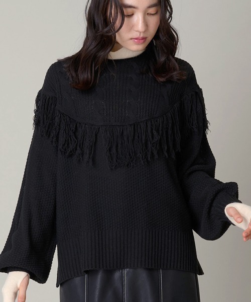 ◆フリンジがこなれ感たっぷり◆ ■デザイン 身頃に鹿の子柄をあしらったデザイン。 ヨークはケーブル柄で、二種類の柄使いが特徴的です。 ヨーク先にフリンジが施されています。 両脇裾にスリット入りで、程よい立体感を演出し よりきれいなシルエットに。 ボリュームスリーブで腕周り華奢見え効果◎ 襟ぐり、袖口、裾口はリブが施されています。 存在感抜群の色展開も魅力的です。 ■スタイリング デニムなどのカジュアルなアイテムと合わせていただくのも◎ ラフなスタイリングをブラッシュアップしてくれます。 …………………… 透け感:なし 厚さ:厚手 伸縮性:ややあり 洗濯方法:手洗い可 …………………… ≪お気に入り登録機能の使い方≫ ■商品のお気に入り登録(ハートマークをクリック) 再入荷通知や値下げ等、お得なご案内を受けることができます。