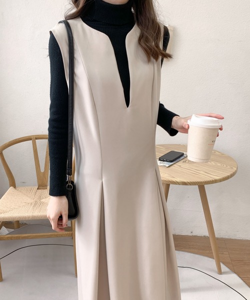 レイヤードスタイルがサマになるスキッパーネックノースリーブワンピースが登場! カジュアルになりすぎず、大人っぽく着こなすことができる1枚です。 Aラインシルエットと、首元の深いスリットがスッキリと見せてくれ 可愛らしくなり過ぎずスマートに着こなせます。 インに合わせるもので印象が違ってくるので、着こなしの幅も無限大! テクニックいらずで上品なレイヤードスタイルが完成するので、忙しい朝でも安心の時短アイテムです。 ■コーディネート ブラウスやカットソーなどレイヤードスタイルを楽しめます。 ブラウスを合わせるときちんとしたお食事会や入卒やセレモニーでも◎ カットソーやシアーインナーを合わせるとカジュアルな印象で今年らしい着こなしに。 上からオーバーサイズのスウェットを重ね着しても抜け感あるスタイリングに。 足元はヒールでもぺたんこでもどちらにもマッチするので合わせるものでお楽しみ頂けます。 ▼お気に入り登録のおすすめ 【気になるアイテムを登録】 ハートをクリックしてお気に入りに登録すると 完売カラーの再入荷やラスト1点の通知、セールの通知を受けとることができます。 【ブランドを登録】 新商品や再入荷、セール通知など、いち早くブランドの情報を受けとることができます。是非ご利用頂き、お買い物をお楽しみ下さい。 ▼商品について ・サイト上のカラー名と、お届け商品に記載されているカラー名が異なる場合がございます。 ・商品の色味は、撮影場所や光のあたり具合などにより色味が違って見える場合がございます 。また、お客様のお使いのPCのモニター環境などにより色味が違って見える場合がございます。 予めご了承の上ご注文下さい。