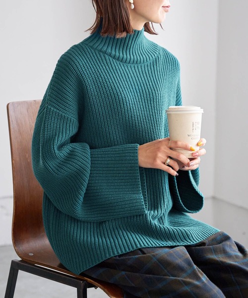 ーーー 片畦のザックリ感がかわいいニットプルオーバー。 膨らみがありソフトタッチな風合いが特徴のUSAコットンをブレンドした素材を使用。 切りっぱなしのようなスッキリとした編み出しとボリューム感のあるタートルネックのバランスが◎。 タートルを折らずにクシャっと首元に溜めることで生まれるニュアンス感が大人らしい1枚。 ーーー フレアスカートや柄スカートと合わせた大人フェミニンなコーディネートがおすすめです。 さらにブーツと合わせれば、今季らしいスタイリングも。
