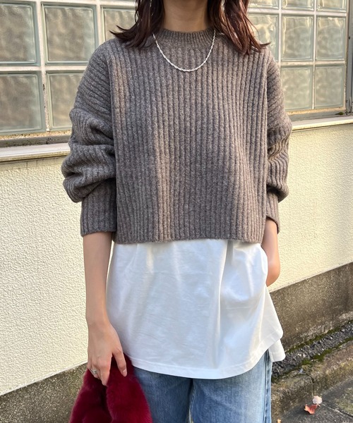 Lui's FEMME(ルイス ファム)オリジナル22AWコレクションより、ヤク混ショートニットトップス(ロンTセット)の登場です! 【素材】 柔らかい肌触りが特徴のヤク混の糸を使用。軽い編み上がりで着心地抜群です! 【デザイン】 パンツスタイルが多い方におすすめ!旬のレイヤードコーデがすぐに叶うニット+カットソーの2点セット。ややショート丈に仕上げたほどよいゆるみのあるたニットはバランスが取りやすい絶妙な着丈でスタイルアップ効果も◎動きのあるスタイルときれいめ モードな印象をプラス。シンプルに仕上げたカットソーは別のアイテムとのレイヤードにも使えます。2点セットでさまざまなコーデが叶う、コーデに迷うことなくスタイリングがキマル優秀トップスです! 【コーディネート】 一着でコーデが決まるショート丈ニット×レイヤードブラウスの「うれしい」2点セット。2つ合わせてレイヤードで着ることはもちろん、別々にも着れるので着まわし力抜群。ショート丈ニットは単品使いでフレアスカートやワイドパンツに合わせるのにちょうどいい一品です。カットソーはカーディガンやジャケットを羽織って着こなすと今年らしいスタイルが完成します。ハーフパンツと合わせた着こなし・バランスがこなれ感とトレンド感があり、おすすめです! 【ブランド】 Lui's FEMME(ルイス ファム) 凛とした芯のある女性。 自立した、女性のワードローブをイメージ。洗練されたかっこよさの中に、女性らしさ・かわいさ・セクシーさを持つ。自分自身のスタイル(自分らしさ・個性・生き方・感覚...)を表現できるひとつの手段としての服。肩肘張らない、心地よいリラックス感のあるスタイルを上質な素材、優雅なシルエットで提案。 ********************** 透け感:なし 裏地:なし 伸縮性:あり 光沢感:なし 生地の厚さ:中厚手(ニット)/薄手(Tシャツ) ********************** ■商品のお気に入り登録(ハートマーク) 完売カラーの再入荷、ラスト1点の通知、セールの際の通知を受け取れます。 ■ブランドのお気に入り登録 新商品の入荷など、いち早くブランドのお得な情報を受け取れます。 是非ご利用ください。 ※掲載画像の商品の色味は、屋内の光の照射や角度により実物と色味が異なる場合がございます。予めご了承ください。