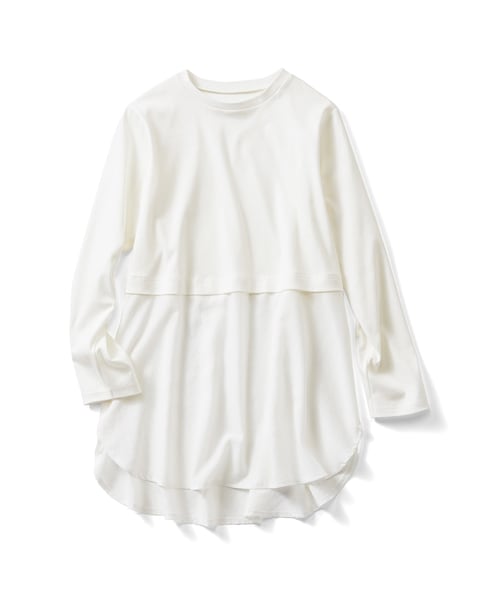 ☆3回エントリーキャンペーン☆■販売価格2,970円⇒3ヵ月ずっと特別価格2,673円■きれいめに重ねたい日の技ありロンT。旬のレイヤードコーデに欠かせないロンTを、すそだけシャツブラウス風に切り替えて、きれいめにアップデート。身ごろは心地よい綿100%でインナーいらず。集めたくなる3タイプのすそデザインに、やや詰まったクルーネックで、こなれ感のある着こなしを楽しめます。■FROM IEDITプランナー―生地の厚さ:適度な厚みのカットソーです。すその布帛はとろみのあるデシンでこちらも適度な厚みです。―透け感:カットソー部分はほとんど透け感はありません。すその布はく部分はやや透け感があります。―伸縮性:カットソー部分は伸びやかです。布はく部分は伸縮性はありません。―コメント:カットソー部分は裏微起毛でひんやりせず、インナーとして着心地もよくおすすめです。すそをチラ見せするレイヤード用ですが、ヒップまで覆うロング丈なので、体形カバー用に普通丈のトップスに重ねるなど一枚あると便利です。