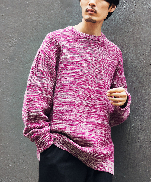 フレンチメリノウールとアクリル糸をミックスしてメランジガーター編みで作り上げたニット。均一な編み目の美しさはもちろん、ウールの良さを活かしたスポンディッシュな風合いがデイリーユースに最適ななアイテムです。ポップなカラーがコーディネートのアクセント使いにもオススメです。**********************透け感:なし裏地:なし伸縮性:あり光沢感:なし生地の厚さ:普通**********************【スタッフ着用コメント】身長:178cm/体重:62kg/普段サイズ:L/着用サイズ:Lサイズ感:身幅とアーム周りに適度にゆとりを感じます素材感:柔らかくも芯を感じる素材着心地:重さも比較的感じず、チクチクとした肌触りもあまりないのでストレスなく着られます**********************【ご注意】※商品の色味につきまして、お客様のお使いのPCのモニター環境により実際のカラーと画像の色味が違って見える場合が御座います。予めご了承の上、ご注文下さい。※店頭・外での撮影画像は光の加減で、実際の商品より明るく見える場合が御座います。商品の色味は生地のアップ画像をご参照ください。本体:ドライクリーニング