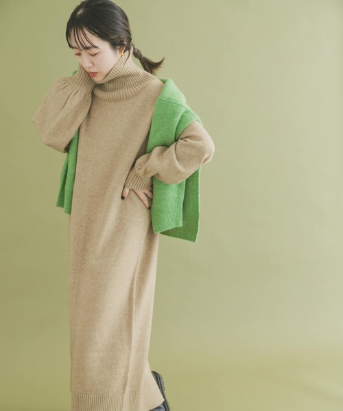 昨年も大人気だったニットワンピース、ご要望にお応えして少し丈感を短く調整して再登場!絶妙なバランスのタートルネックデザインが魅力のニットワンピース。ストンとした落ち感のあるIラインシルエットに仕上げた1枚。幅感を持たせ、程よくルーズなルックスが魅力。バックにはアウトリンキングの特徴的なデザインを採用し、裾部分には深めのスリットを加えて歩きやすいデザインに仕上げました。※この商品は、ピリング(着用中の摩擦などにより毛羽が絡み合い出来る、繊維の表面の毛玉)ができやすい素材を使用しています。ピリングができた場合は、引っ張って取ろうとせず、ハサミや毛玉取り器などで、ひとつひとつ取り除いてください。※商品画像は、光の当たり具合やパソコンなどの閲覧環境により、実際の色味と異なって見える場合がございます。予めご了承ください。※商品の色味の目安は、商品単体の画像をご参照ください。▼お気に入り登録のおすすめ▼お気に入り登録商品は、マイページにて現在の価格情報や在庫状況の確認が可能です。お買い物リストの管理に是非ご利用下さい。-----------------------------[スタッフA]年齢 : 30代前半, 身長 : 162cm, 体型 : 普通/骨格ウェーブ普段の着用サイズ : M【着用カラー/サイズ】BRN/FREE【サイズ感】程よくゆとりのあるサイズ感です。162cmで足首が出る丈感です。【素材感・着心地】すとんと落ちたストレートシルエットでスタイルアップ効果ありです◎素肌に着用してもチクチク感は一切なく、ストレスフリーで着用いただけます!【その他】スタンドタイプのタートルネックでマフラーいらずです。とっても暖かな着心地です♪ボリュームのある袖デザインですが、厚すぎない生地感なのでアウターを重ねてもごわつきませんでした。----------------------------------------------------------透け感:なし伸縮性:あり裏地:なし光沢:なしポケット:なし-----------------------------