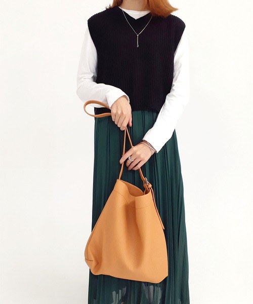 \A4サイズ収納でポーチ付♡ レザーポーチ付きソフトフェイクレザー 縦型(タテ)ワンハンドルショルダーバッグ/ A4サイズが縦(タテ)で収納出来るビックサイズのレザーショルダーバッグは一年中活躍するアイテム。 大きめサイズを探されていた方の希望に答えるバッグです。 さらにバッグと同じレザー素材のポーチまで付いてお得感のあるセットになっています。 バッグの口にはマグネットが付いているので荷物の飛び出しも抑えられ安心です。 馴染みやすい落ち着いたカラー展開が大人コーデにぴったり♪ シンプルカジュアルスタイルからキレイめスタイルまでオンオフ問わず幅広く合わせやすい優秀バッグです◎ ♦thank u more (もっと感謝を)♦ 『可愛いね』 女性を喜びへと導くこのことば。 この称賛のことばを多く受けて頂くために私達のブランドが使われていくことを願っています。 『ありがとう』 この感謝のことばを多く使って頂くことが私達のブランドコンセプトになっています。 『可愛いね』&『ありがとう』 この素敵な会話が聞こえてくるような、永遠に変わらない愛すべきものを提案していきたいと思います。 *撮影環境によりスマートフォン、パソコンなどの画面上と実物では多少色味が異なることがございます。 *商品の特性上、色や形に多少の個体差がございますので予めご了承ください。 *画像の商品はサンプル時のものになります。実際の商品と色味、仕様、加工、サイズ、素材等が若干異なる場合がございますのでご了承ください。 【お買いものをお楽しみいただく為に!】 ▼商品のお気に入り登録 右のハートをクリック頂くと完売カラーの再入荷通知や、ラスト1点の通知、セールの通知も受け取ることができます。 ▼ブランドのお気に入り登録 ブランドタグのページからお気に入りをクリック 新商品や再入荷など、いち早くブランドのお得な情報を受け取ることができます!