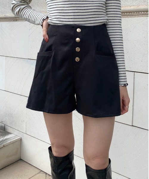 美シルエットで着回しの効くショートパンツ ■デザイン ・ゴールドのボタンが今年らしく高見えするデザイン。 ・トップスをインしてもすっきりと着こなせるハイウエスト仕様で、スタイルアップ効果が期待できます。 ・裾はややフレアで細見えし、スッキリしたシルエットなので様々なトップスと合わせやすいです。 ・定番カラーの無地と、トレンドのツイード生地の3色展開。 ・サイドは着脱しやすいファスナー付き。 ・ウエストの後ろはゴム入りでノンストレスで着用できます。 ■カラー ・アイボリー(無地)/スミクロ(ツイード)/ブラック(無地) ■スタイリング ・旬のアームウォーマー付きニットや、オーバーサイズのカーディガンに合わせるだけで簡単にお洒落見えが叶います。 ・すっきりしたシルエットなのでチュニックやワンピースのインナーとしても最適です◎ ・クロップド丈のスウェットで合わせればきれいめカジュアルな着こなしに。 ・足元はロングブーツやサイドゴアブーツなど、重厚感のあるものがバランス良く着ていただけます。 ■POINT 秋服、秋コーデ、冬服、冬コーデ、韓国ファッション、韓国コーデ、ガーリー、レトロ、ハイウエスト、大学生コーデ、ツイード素材 ----------------------------- 裏地:あり 光沢感:あり(ボタン) 透け感:なし 伸縮性:なし ----------------------------- model:162cm ※着用、お取り扱いの際は、商品についている品質表示とアテンションタグを必ずご確認下さい。 ※ご覧のモニター環境や撮影環境により実際の商品と多少色味が異なって見える場合がございます。 ご理解の程よろしくお願いいたします。 ※裏地はついておりますが、アイボリーは下に濃い色など着用しますと透け感が出てしまいますのでご理解のほどお願いいたします。 ■お気に入り登録のおすすめ【気になるアイテムを登録】ハートをクリックしてお気に入りに登録すると完売カラーの再入荷やラスト1点の通知、セールの通知を受けとることができます。 【ブランドを登録】新商品や再入荷、セール通知など、いち早くブランドの情報を受けとることができます。