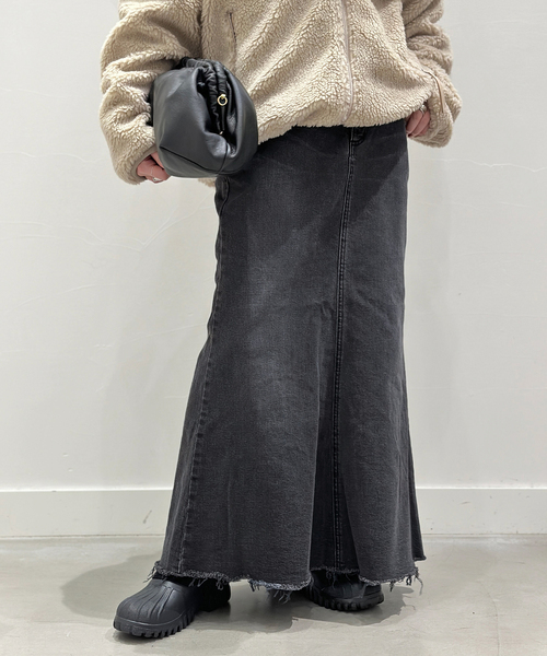 ボリュームの出やすい冬の着こなしに合わせたいデニムスカート!程良くフィットしながら裾にかけて広がるシルエットで、スウェットなどカジュアルな着こなしも女性らしく見せてくれます。ランダムにカットされた裾のデザインは、ラフなニュアンスでデイリーなスタイリングにもこなれ感をだしてくれるので、合わせるシューズも選ばない便利な1着です。店舗パートナーがInstagramにてスタイリングを紹介しています!@atk_aps@aya.is__ap@aps_i0829※裾が断ち切りの仕様となっています。※取り扱いについては、商品についている取扱表示にてご確認下さい。※照明の関係により、実際よりも色味が違って見える場合があります。またパソコン・スマートフォンなどの環境により、若干製品と画像のカラーが異なる場合もございます。※商品の色味は、商品アップ画像をご参照ください。本体:手洗い可能