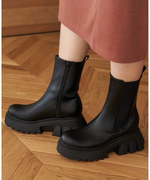 2022年秋冬モデル 足元のボリュームたっぷりな厚底ブーツ。 着脱が楽になるサイドゴア仕様。 ボリュームのある厚底は、履くだけでスタイルアップ効果も◎。 ●カラー:ブラック・PU/ブラック・スエード/ダークブラウン・PU/ホワイト・PU ●サイズ: Sサイズ(22cm-22.5cm) Mサイズ(23cm-23.5cm) Lサイズ(24cm-24.5cm) LLサイズ(24.5cm-25cm) ●ワイズ(横幅):E相当 ●甲材:合成皮革/合成繊維 ●底材:合成底 ●中国製 ※表記はMサイズを基準にしております。 ※ご希望の商品が売り切れの場合がございます。