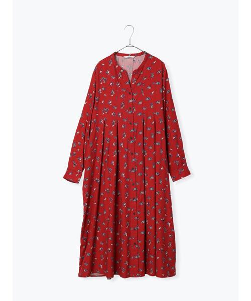 オリジナルで作成した可憐なバラ柄が印象的なスキッパーワンピースです。 滑らかな落ち感のある綿レーヨンのビエラ素材を使用し、肩から入れたボックスプリーツによって大人っぽいドレープ感の出るワンピースになっています。 重めな色味になりがちな秋冬物に華やかさを加えるアイテムとして使用できます。 ※商品画像は、撮影環境やお客様のご利用のPC・スマートフォンのモニター環境などにより実物と色味に差異がある場合がございます。