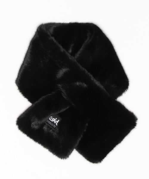 冬コーデのアクセントに! エコファー素材のロゴ入りマフラー 肌触りのいいエコファー素材のマフラー。 オリジナルで作成したX-girlロゴのネーム付き。 サッと着脱しやすい仕様も魅力です。 ゼブラ柄でインパクトのあるホワイトと、単色カラーのブラックとライトブルーの3色展開です。