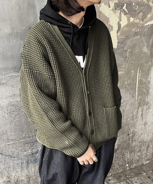 【2022 AW】Oriens JOURNAL STANDARD編み地にこだわり絶妙な生地感が上品なムードを演出してくれるカーディガン。生地の表面のポコポコっとした風合いは秋冬の羽織に最適です。オーバーサイズなシルエットとシンプルなカラー展開は着回しにも活躍してくれます。カラーによってオリジナルのスタイリングを楽しめる一枚です。※取り扱いについては、商品についている品質表示でご確認ください。ブラック着用スタッフ:身長178cm 着用サイズ:Lカーキ着用スタッフ:身長178cm 着用サイズ:Lモデルサイズ:身長:183cm 着用サイズ:L本体:ドライクリーニング