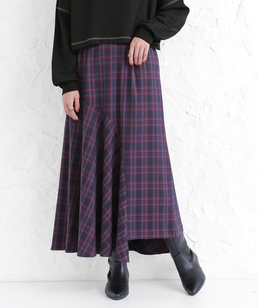 『ラクにお洒落が決まる。』 どこか上品な雰囲気を醸し出す、チェック柄スカート♪ ラウンドした切替ラインからたゆむシルエットが綺麗なアシンメトリーフレアデザイン。ヒップまわりはすっきりとさせたサイズ感と程よい丈感で、コーデに取り入れやすいところが魅力的です。 柔らかい肌触りでさらっと上品な落ち感のチェック柄生地を使用。軽くてしなやかな風合いが特徴で、これからの季節快適に着用いただけます。 さらに、お好きなシルエットが選べるM~3Lサイズ展開♪ 今、好きな物、興味あることを自由な発想で表現できる≪ n'OrLABEL ≫。 「実用性と機能性、そして遊び感覚」、多面性を楽しめるピュアでモードなデザインライン。 一味違った大人のお洒落を味わえる≪n'OrLABEL≫チェック柄アシメフレアスカートです。