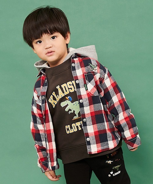 恐竜やスケボーの刺しゅうがストリートっぽさを演出するクールな長袖シャツです。 前ボタンや袖口がスナップなので着脱も簡単に行えます。ワンピース(品番:5124302)とのお揃い企画のアイテムなので、リンクコーデを楽しめるのも魅力。落ち着きがちな秋冬コーデに明るい表情を与えてくれるチェック柄のデザインです。刺しゅうの裏に「あて布」はございません。【透け感】透けない【生地の厚さ】普通【伸縮性】なし【裏地】なし【ポケット】あり