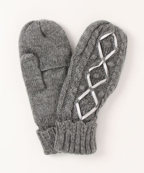 【アイテム説明】axes femme web catalog 掲載アイテム♪サテンリボンのレースアップがアクセントになったニットミトンです。ニットの手袋は今季大注目のアイテム!光沢の綺麗なサテンリボンを使用し、袖口の折り返し部分をさりげなくスカラップラインにすることで、カジュアルな中にもaxes femmeらしい上品さをプラスしました。内側はボアを使用しているのであたたかさも◎。指先が出るデザインなので着けたままスマホ等の操作が出来たりと、日常的な場面で大活躍間違いなしです♪キッズ用の DA634X01KO ダイヤリボン使いニットミトンともに、親子・姉妹でのお揃いコーデも楽しめますよ。