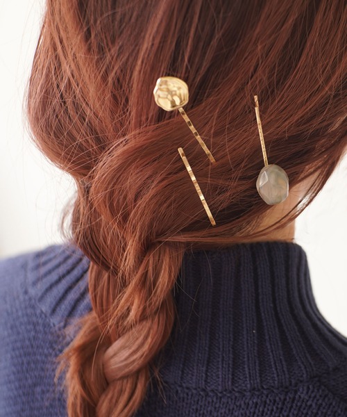 【 ammy. / エイミードット 】 ニュアンス ストーン ヘアピンセット / 3点セット ヘアアレンジの幅が広がるお得な3点セット☘ シンプルでスタンダードなゴールドのピンに、雫のようなストーンパーツが付いているピン。 そして丸いフォルムから波のようにうねっているパーツが付いたピンの3点セットになっております。 1点でも可愛く、3点組み合わせてお使いいただくとより雰囲気やコーディネートを引き立てます! あみおろしやまとめ髪につけると今どきぽっく仕上がります♥ とってもお得な3点セットなのでお見逃しなく~! ※撮影・モニター環境等により実際の商品の色味と異なって見える場合がございます。 【インフォメーション】 ◆商品のお気に入り登録 完売カラーの再入荷通知を受け取ることができます。 ぜひご登録ください♪ ◆ブランドのお気に入り登録 新商品や再入荷などのお得情報を受け取ることができます。 ぜひご登録お願いします。