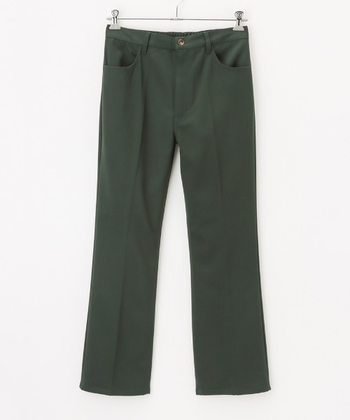 ストレッチ性のある素材やウエストゴムでイージーにはける 大人のためのセミフレアパンツが登場です! フレアすぎない絶妙なこだわりシルエットとセンタープレスの シナジーによって抜群の脚長効果が期待できます◎ カラーは、ブラック・グリーン・サックスブルー・ワイン・ブラウンの5色展開。 合わせるトップスによってカジュアルからきれいめまで コーデが決まる、幅広く活躍すること間違いなしの一枚です! ※ご覧になられているモニター環境や端末により色の見え方に違いがございますので、ご了承ください。 ■モデルサイズ 178.5cm 60.5kg B:85/ W:69/ H:90 着用サイズ:L ※商品画像は、ご覧になられているパソコン、ディスプレイ等の設定により、実際の色味とは異なる場合がございます。