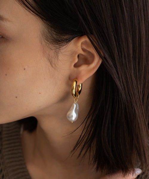 【デザイン】パールモチーフピアス 自然の生み出した不揃いなフォルムのパールが、やわらかな印象をつくるピアス。 やわらかく波打つようなパーツとの合わせで、 ナチュラルな中にもモダンなニュアンスを持ったデザイン。 縦長のフォルムがお顔回りをすっきりと見せ、デイリーからオケージョンまでマルチに活躍するアイテムです。 【仕様】 ●サイズ 直径:約2cm 幅:約4.9mm モチーフ:3cm ●重さ:片耳約9g ●素材:ステンレス(K18コーティング)・プラスチックパール ●カラー:ゴールド 【注意事項】 ■ピアスポストは非常に繊細で、強い力を加えると折れてしまう可能性がございます。お取り扱いには充分にご注意ください。 ■金属アレルギーの方はご注意ください。ステンレスを使用しておりますが、アレルギー反応には個人差があるため、ご理解の上ご購入ください。 ■商品の撮影には最大限注意を払っておりますが、お使いのモニターやPCスペックにより、商品の色が実際と異なる場合がございますのでご了承ください。 ■包装形式・付属品は時期により変更となる場合がございます。 ■クスミ防止のため、ご使用後は油分や汚れを乾いた布でやさしく拭き取ってください。 ■サイズによる返品交換はできません。予めサイズを必ずご確認ください。 ◆商品のお気に入り登録◆ 完売カラーの再入荷通知や、ラスト1点の通知、 セールの通知も受け取ることができますので、是非ご登録ください。 ◆ブランドのお気に入り登録◆ 新商品や再入荷などの情報を受け取ることができますので、是非ご登録ください。