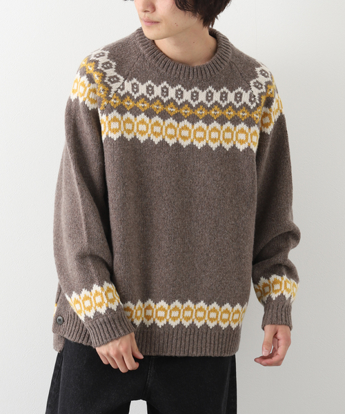 BAMBOO SHOOTS メーカー品番:M220300 「トレック」シリーズの新作はベンチレーション搭載のノルディックセーター。 〈マウンテンリサーチ〉小林節正氏とのコラボ。 脇下からカフスの手前まで大きく開くベンチレーションを搭載したトレック仕様のノルディックセーター。 現代のアウトドアブランドが提案する宇宙服のようなものではなく、ウールとコットンでトレックを歩きたい、という思いから生まれたシリーズのアイテムです。 【BAMBOO SHOOTS / バンブーシュート】 甲斐一彦。『極私的』ワールドスタンダード《ARKAIVE》 「スタンダード」や「普遍的」という言葉が日常的に使われるようになった昨今。これは誰にとっての「スタンダード」であり「普遍的」なのでしょうか。当たり前に使われるこのコトバにふと「?」をおぼえるのです。 「アウトドア」と「ファッション」が出会う場であるBAMBOO SHOOTS。 それをゼロから作り上げてきた甲斐一彦。このブランドは甲斐一彦が出会い、心突き動かされて蒐集した「古着」から生まれました。生地、縫製、付属パーツ。服がファッションになる、はるか昔にその時代の「必要」から生まれた「必然」。甲斐一彦の古着には多くの「必然」が込められています。その「必然」を甲斐一彦が「極私的」に抽出し、編集。「極私的」なワールドスタンダードを作り上げます。 ※取り扱いについては、商品についている品質表示でご確認ください。 ※照明の関係により、実際よりも色味が違って見える場合があります。またパソコン・スマートフォンなどの環境により、若干製品と画像のカラーが異なる場合もございます。 ※商品の色味は、商品アップ画像をご参照ください。 モデルサイズ:身長:179cm 着用サイズ:L 本体:ドライクリーニング
