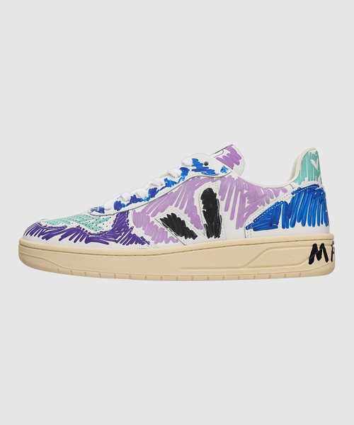 MARNI×VEJA / マルニ×ヴェジャ LOW-CUT SNEAKER V10・MARNI×VEJAの世界的に注目されているコラボレーションスニーカー・MARNIらしいカラーのマジックペイントはデジタルプリント・ヒールにMARNIロゴ・ブラジルにある環境、労働者に配慮したVEJAの工場で生産・レザー素材は環境への負荷が少ない方法で生産され、特に水の使用量を最小限に抑えている・レザーワーキンググループ優良企業認定の革なめし工場を使用・ジャージーライニング:オーガニックコットン33%、リサイクルポリエステル67%・ソール:バイオ素材、リサイクル素材(アマゾン川流域産ゴム、廃棄米、リサイクルゴム)・シューズボックス:リサイクルされた厚紙を使用。接着剤を使用せず、インクの使用も最小限にしている<VEJA(ヴェジャ)>2005年にフランスでスタートしたシューズブランド。素材や生産背景などにこだわって作られているクリーンなスニーカーは世界的に高く評価されている。※商品お届けの際の納品書は、お買い上げ日を証明する書類として大切に保管してください。(修理などの際に必要となります)