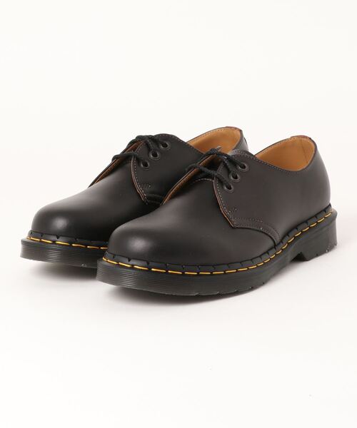 アイコニックな3ホールシューズのシルエットはそのままに、サテンのような輝きを持つ「アブルッツォレザー」を用いて再構築された1461 3ホールシューズ。最大の特徴はアッパーと異なる配色で施されたバックストラップ。さらにカットデザインの入ったウェルトやリブ付きのアイレットなど、細かいディテールにまで手を加えてシューズ全体に絶妙なコントラストを与えています。ドクターマーチンの定番シューズと同様にイエローのウェルトステッチを施して仕上げています。